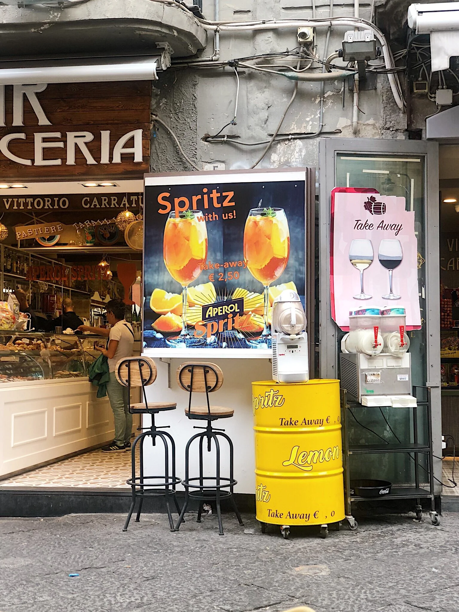 Later that evening, we didn’t have any plans for dinner, so we decided to walk up the street to the heart of Naples and see what was going on. It was really lively in the area and we ended up grabbing a couple of $1 spritzes, which was fun. We wandered upon another Michelin star pizza place called Sorbillo and decided we’d do pizza back-to-back and have a little competition between the two pizzerias.