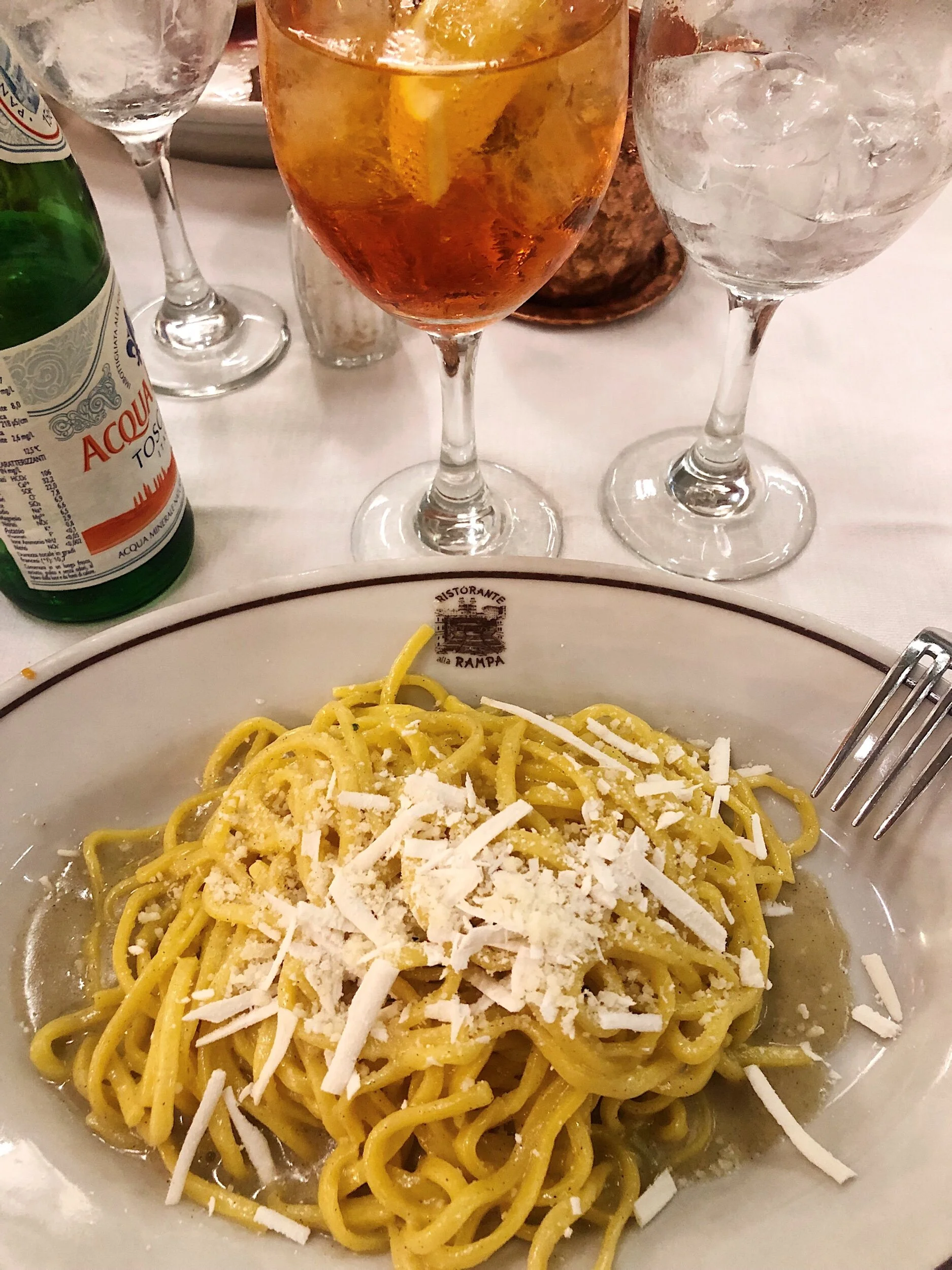 After the Spanish Steps, it was time to find something to eat. We found a nearby restaurant called Alla Rampa. The food and service were great here as well. This is where I tried Cacio e Pepe for the first time, and wow! So good. We even got serenaded at the end of our evening, such a great way to end our first night in Italy.